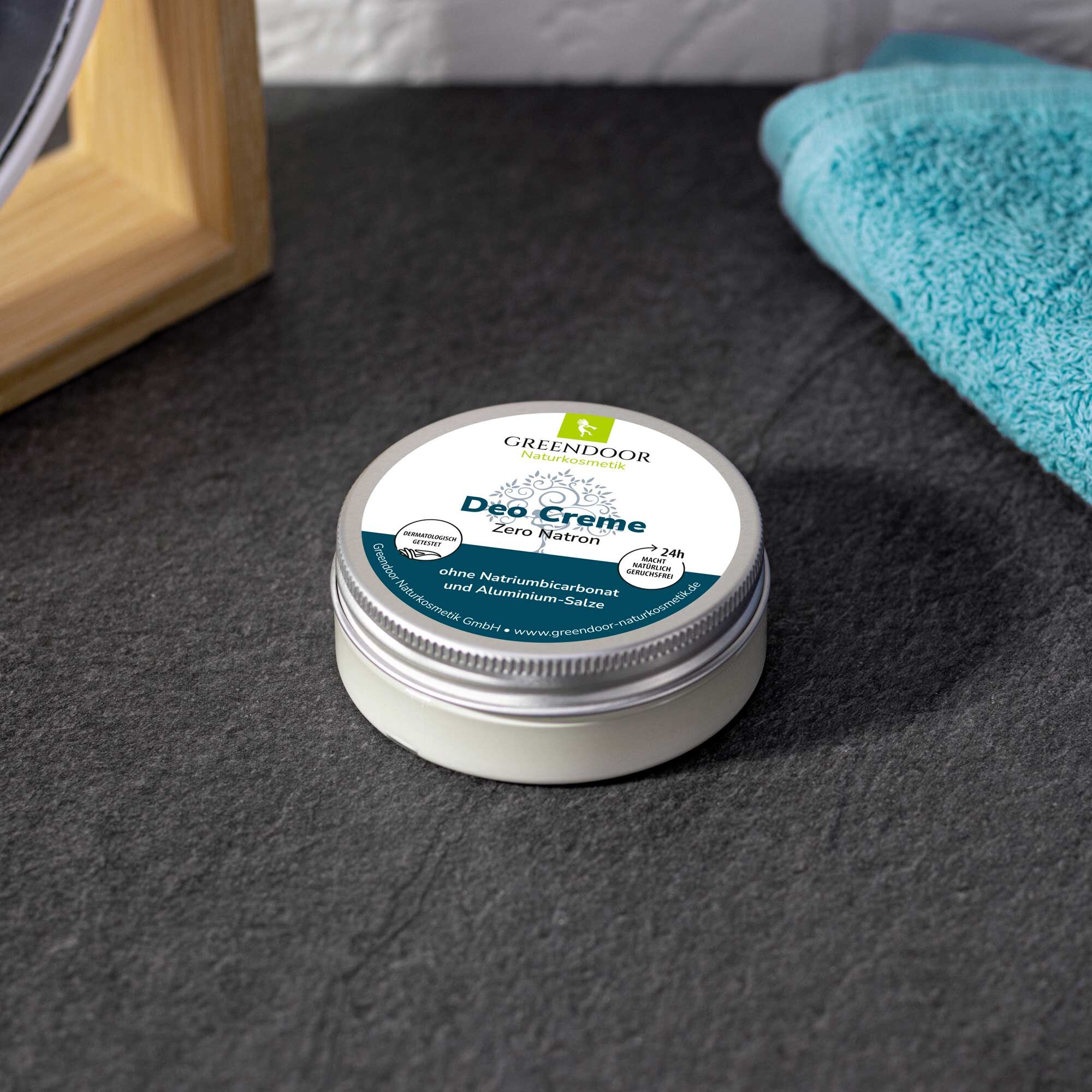 Der pflanzlich-mineralische Rohstoff Komplex schließt Geruchsmoleküle, die bei der Zersetzung von Schweiß entstehen, sicher ein und absorbiert diese. Pflegendes BIO Babassuöl, BIO Sheabutter und Mangobutter sorgen für eine extra zarte Achselhaut. GREENDOOR Deo Creme Zero Natron wirkt desodorierend, verhindert dabei nicht die natürliche Transpiration, die Haut kann normal atmen.