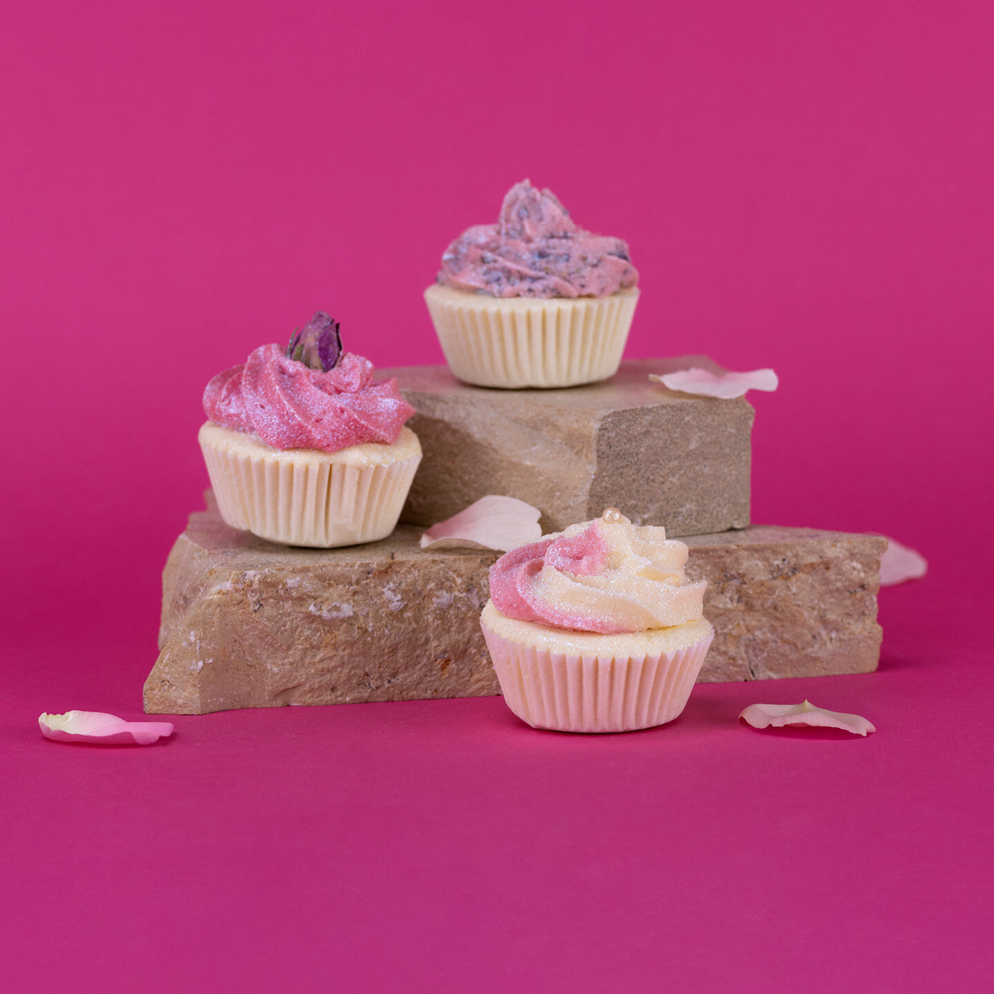 Lass Deine Seele baumeln und gönn Dir und Deiner Haut eine Auszeit mit unseren GREENDOOR Badecupcakes Frozen Rose. Du erhältst 6 Badecupcakes Frozen Rose mit drei verschiedenen Toppings. Sie duften alle zart rosig und strahlen im zarten Pastell mit einem Hauch von glamourösem Glimmer.
