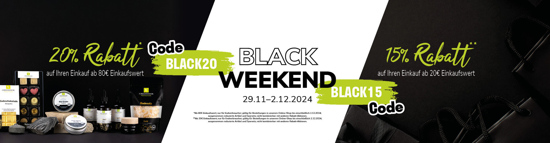 Erleben Sie die Naturkosmetik Black Week bei GREENDOOR und sichern Sie sich exklusive Rabatte auf unsere hochwertigen Produkte.