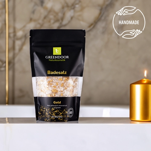 Genießen Sie entspannende Momente mit unserem Badesalz, das wie echtes Gold schimmert. Mit atlantischem Meersalz und reinen ätherischen Ölen verwöhnen Sie Haut und Sinne.
