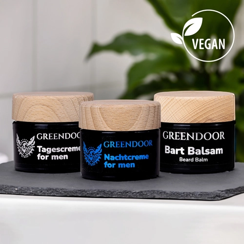 Unsere GREENDOOR Tagescreme for Men und Nachtcreme for Men bieten optimale Feuchtigkeitsversorgung und Schutz. Vegan, dermatologisch getestet und im stilvollen Glastiegel. Unser veganer Bartbalsam pflegt und beruhigt die Haut.Spezielle Gesichtspflege für Männer.