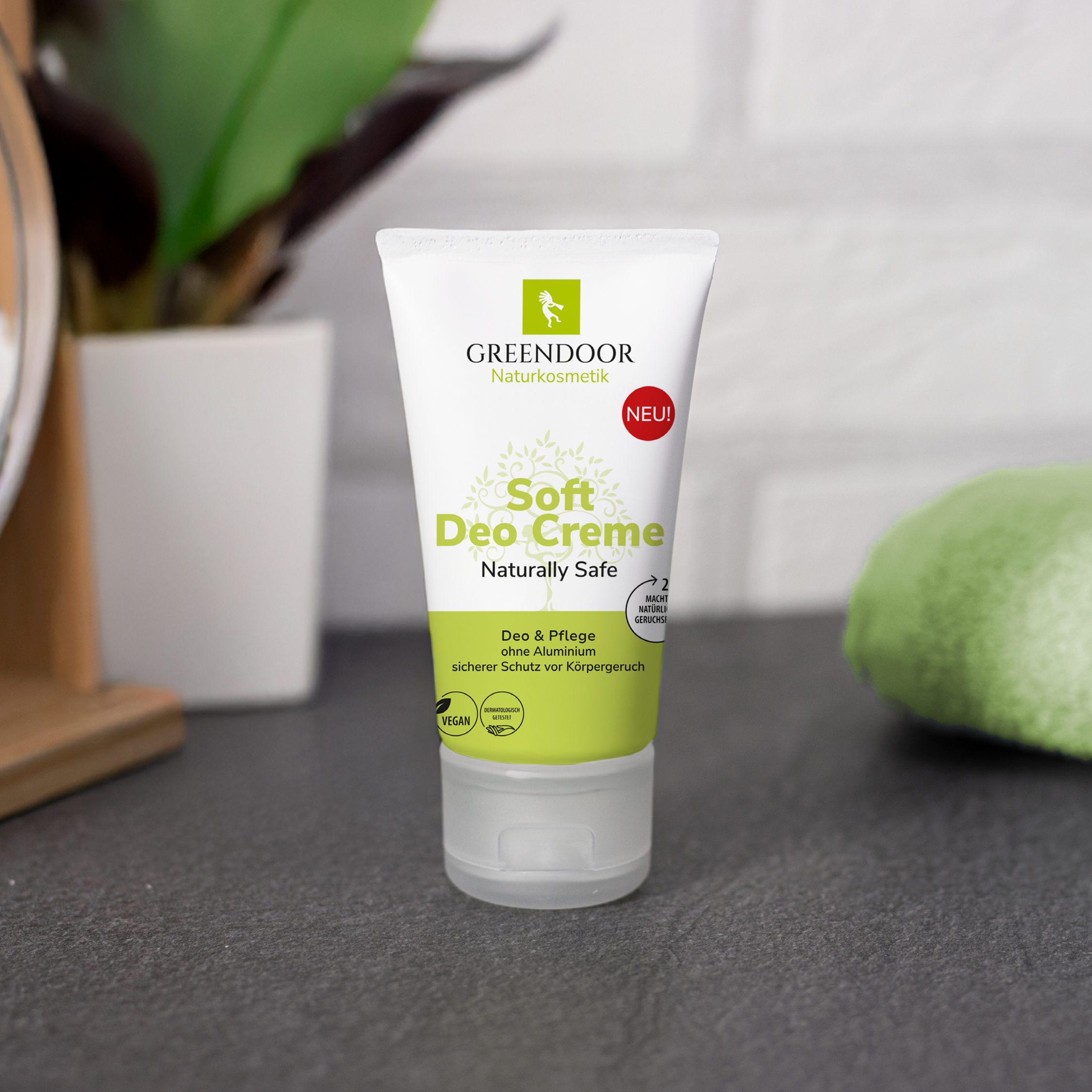 NEW at Greendoor: Germany’s first alkaline deodorant in a delicate emulsion form! After intensive research and development, we have created a wonderful and unique new deodorant. A consistently soft deodorant cream with the naturally effective, aluminum-free GREENDOOR formula in a hygienic tube.