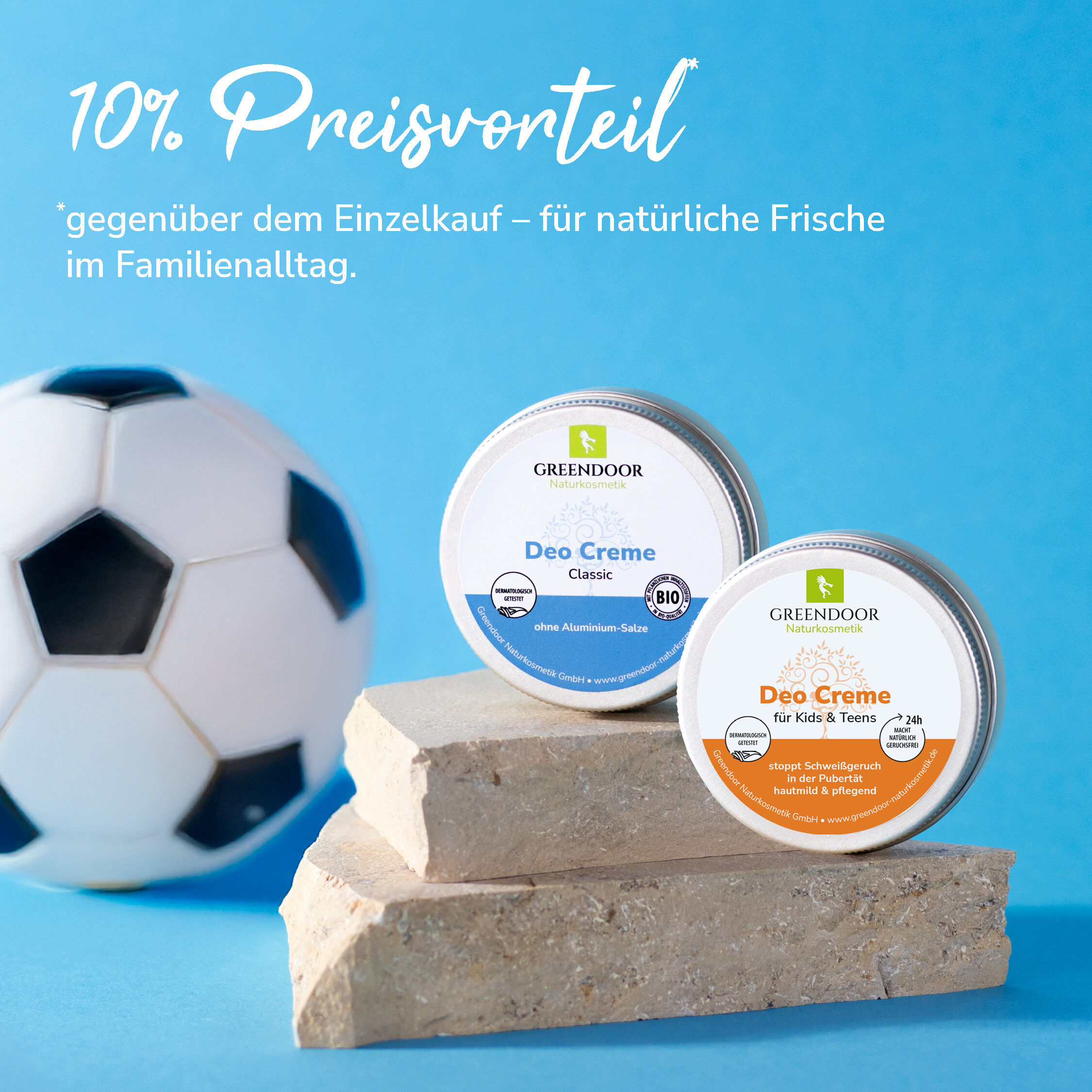 GREENDOOR Familien-Deo-Sparset: Deo Creme Classic & Deo Creme für Kids & Teens Natürliche Frische – von Anfang an. Jetzt 10% günstiger im Set!