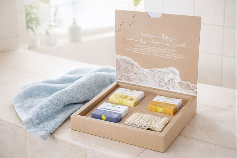 GREENDOOR Naturkosmetik Solid Bar Pflegeserie in Papierverpackung.