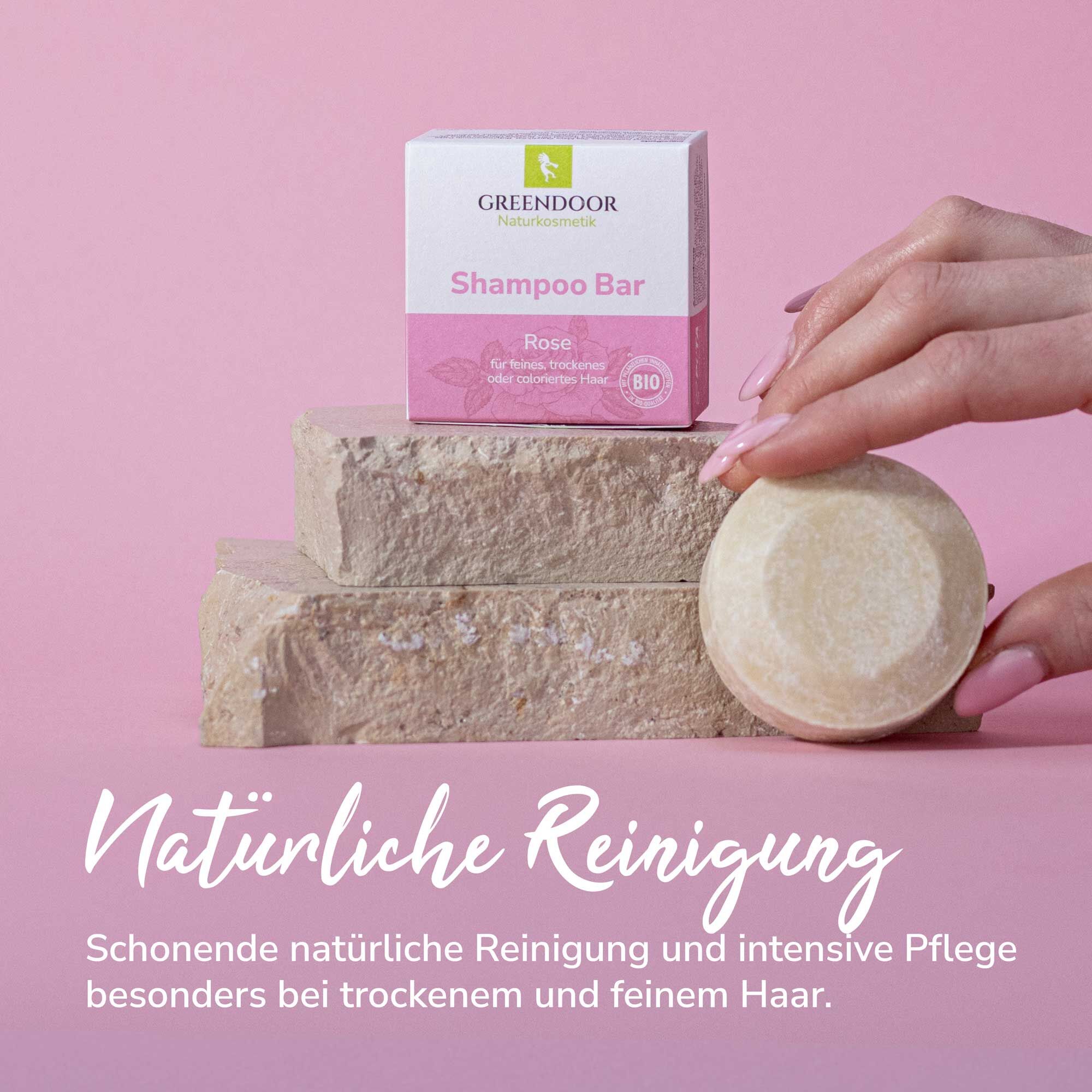 GREENDOOR Shampoo Bar Rose ist grundsätzlich für alle Haartypen geeignet. Besonders geeignet bei trockenem und feinem Haar.