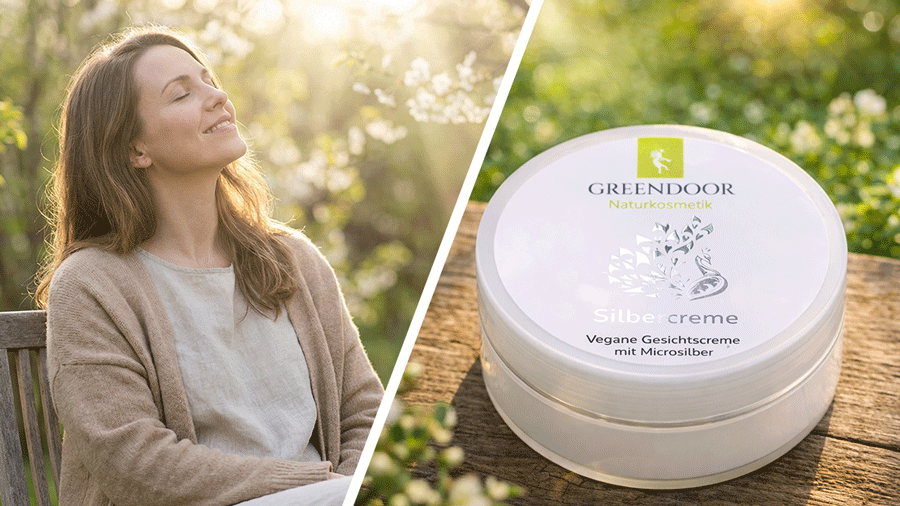 Die GREENDOOR Silbercreme ist eine hochwertige leichte Gesichtscreme, die vor allem als Tagescreme Anwendung findet. Das Besondere an dieser Tagescreme ist der Anteil an antimikrobiellem Microsilber, also reinen sehr fein vermahlenen Silberpartikeln. Aufgrund der Partikelgröße des Mikro Silbers dringt dieses nicht in tiefere Hautschichten ein, sondern entfaltet seine antimikrobielle Wirkung auf der Hautoberfläche. Silber schützt nachweislich gegen eine Bandbreite verschiedenster Keime, Bakterien und Pilze und kann so Entzündungen, Rötungen und Hautirritationen entgegen wirken. Bereits im Mittelalter setzte man bei Kopfoperationen Patienten Silbermünzen in die Schädeldecke ein, um den Heilungsprozess zu unterstützen. Ebenso werden Verbände mit Silberionen erfolgreich bei der Wundversorgung im Krankenhaus und in der ambulanten Pflege verwendet.