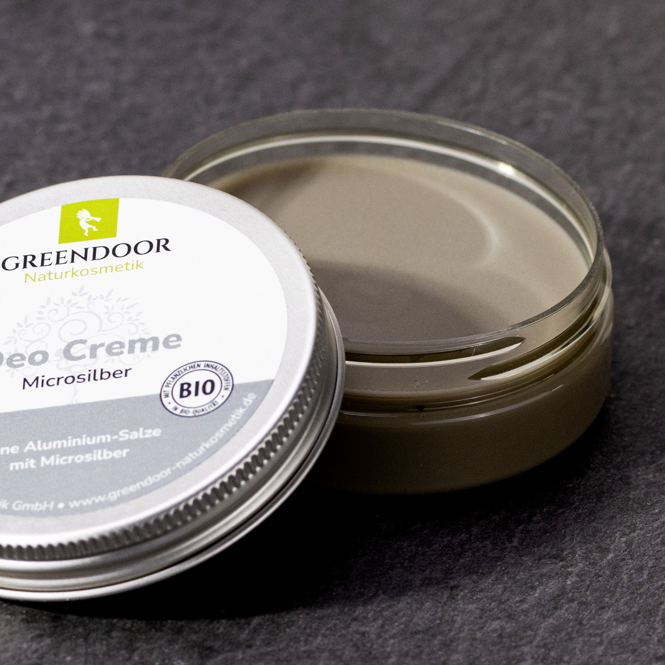 Unsere Deo Creme Microsilber bietet starken Schutz den ganzen Tag. Das enthaltene Microsilber hemmt das Wachstum von geruchsverursachenden Bakterien und sorgt so für langanhaltende Frische. Im Gegensatz zu Nano-Silber dringt Microsilber nicht in tiefere Hautschichten ein, sondern wirkt oberflächlich. Zusätzlich schließt der pflanzliche Rohstoff Zinc Ricinoleate Geruchsmoleküle ein und absorbiert sie. Bio Babassuöl, Bio Kakaobutter und Bio Sheabutter pflegen die Haut und machen sie extra zart. Die nachhaltige Verpackung aus 100% recyceltem Kunststoff ist umweltfreundlich und praktisch. Eine Dose macht 6 Monate natürlich geruchsfrei.