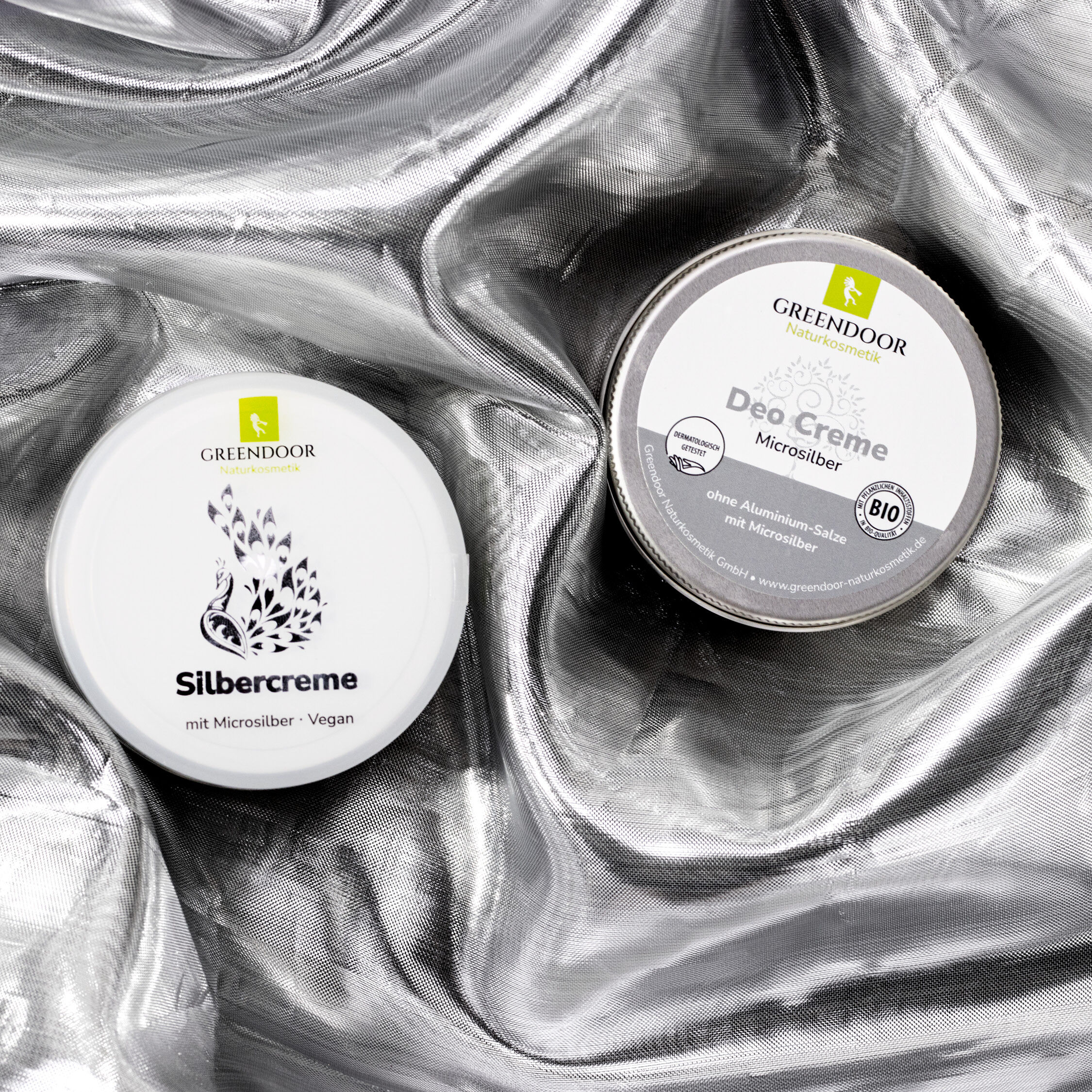 Suchen Sie nach einer natürlichen Lösung für Hautprobleme? Das GREENDOOR Sparset Silberschutz Duo bietet Ihnen die ideale Pflege mit hochwertigem Microsilber! Bestehend aus unserer hochwertigen Silbercreme und der praktischen Deo Creme Microsilber, sparen Sie ganze 10% im Vergleich zum Einzelkauf.